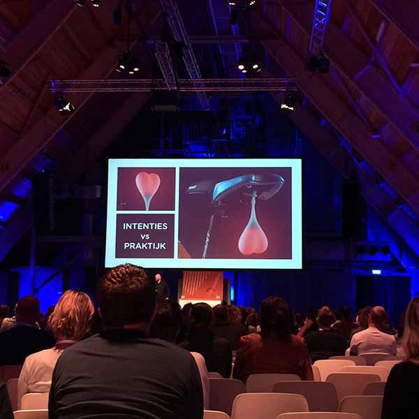 De hele dag waren er verschillende key note sprekers, waaronder Antal de Waij (schrijver van het boek “Content! Zuurstof voor je klanten!”) en Huib van Bockel (ex-marketingdirecteur Red Bull) die de bezoekers inspireerden met hun verhaal. Karl Raats stak er wat mij betreft met kop en schouders bovenuit, met zijn “Creativiteit voor dummies” wist hij de hele zaal een uur lang geïnteresseerd en aandachtig te laten luisteren. Met een flinke dosis humor (de zaal lag echt regelmatig helemaal plat) gaf hij ons een “spoedcursus creativiteit voor klanten” om vanaf nu een product te kunnen maken zonder dat de klant, zoals Karl het zo subtiel uitdrukte, “jouw topwerk vakkundig verknoeit met zijn suggesties”.