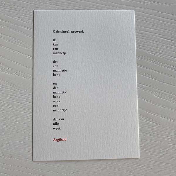 Er werd heel veel moois aangeboden en ik moet zeggen dat ik er behoorlijk hebberig van werd… Er moest dus toch ook echt wel wat meegenomen worden ;-). Zo kocht ik een setje postkaarten met grappige doordenk gedichtjes van Argibald, een mooie print voor kantoor, een boekje met oude Sinterklaasliedjes (heerlijk nostalgisch) gebonden in een kaft van bijzonder marmerpapier uit India en ik vond een prachtig geïllustreerd boek uit 1963 dat in een opgave van slechts 175 genummerde exemplaren uitgegeven is voor de leden van Stichting De Roos.