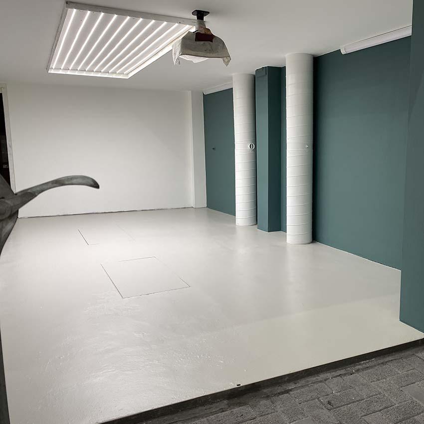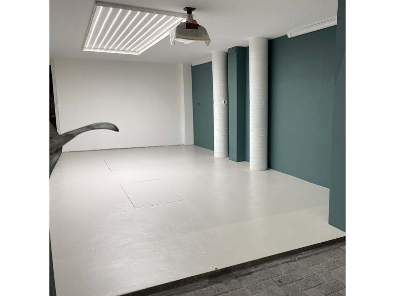 Nadat alle lagen erop zaten, moest de verf nog goed uitharden (2 weken) en zat er niks anders op dan wachten voordat we weer verder konden in de ruimte. Afgelopen week was de vloer uitgehard en konden eindelijk de eerste meubels erin. Dat was echt het leukste moment tot nu toe! Het begint nu al een hele gezellige ruimte te worden en ik verheug mij erop om 'm in dienst te nemen. Maar eerst nog even de volgende klussen afhandelen:
