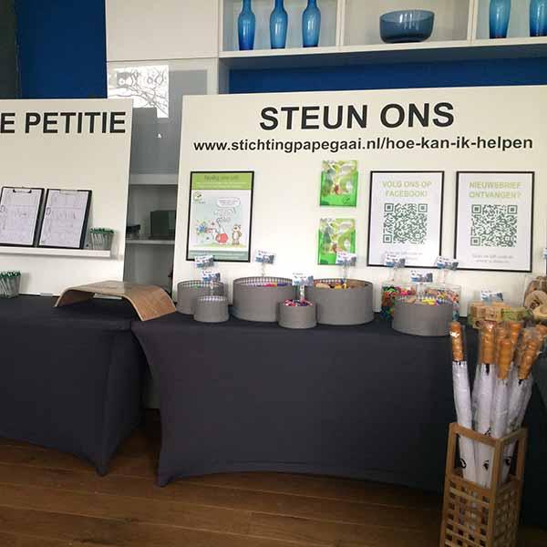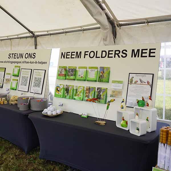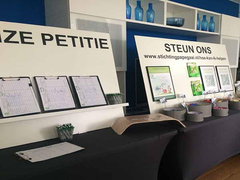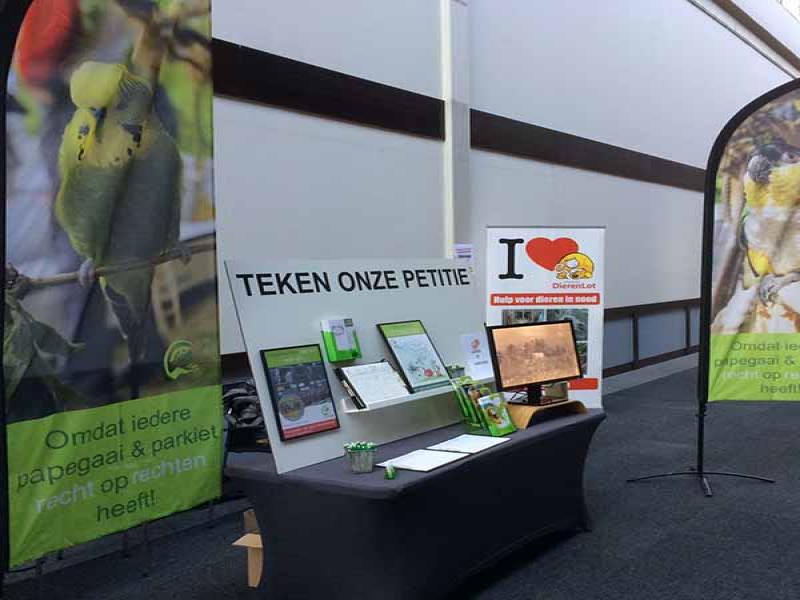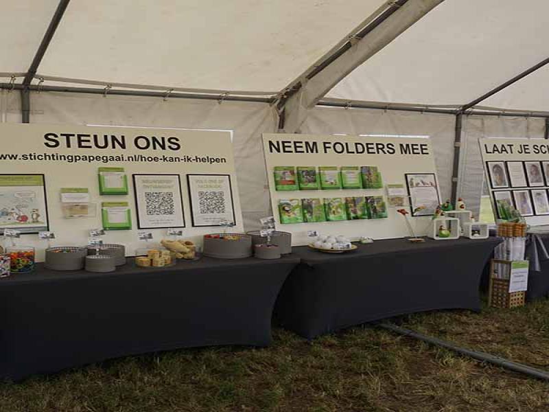 Al jaren is Stichting Papegaai actief en komt op voor de rechten van Papegaaien en Parkieten. Om zoveel mogelijk mensen te bereiken en ook persoonlijk te kunnen spreken is de stichting ieder jaar te vinden op een aantal interessante en relevante evenementen door het hele land. Hiervoor wordt altijd heel veel materiaal meegesleept, uitgestald en na afloop weer opgeruimd. Al dat heen en weer gesleep laat natuurlijk op een gegeven moment zijn sporen na, met als gevolgd dat de presentatiematerialen wel eens aan vernieuwing toe waren.