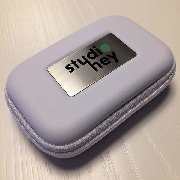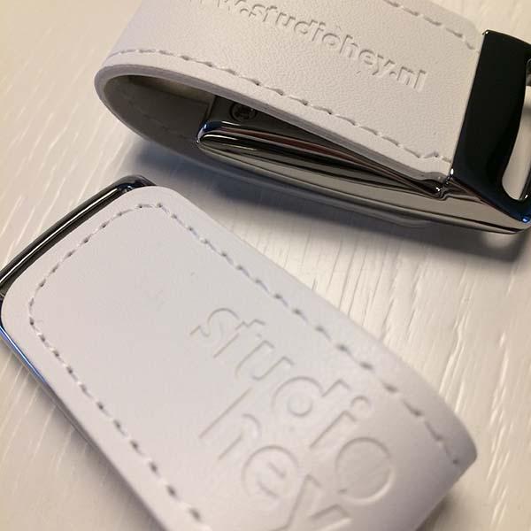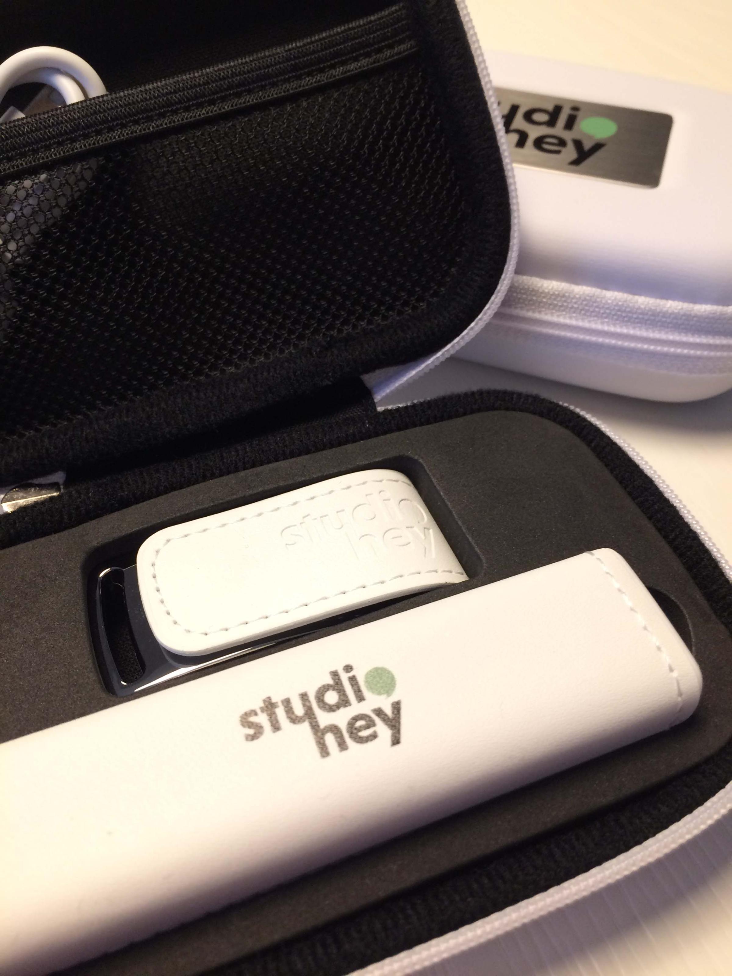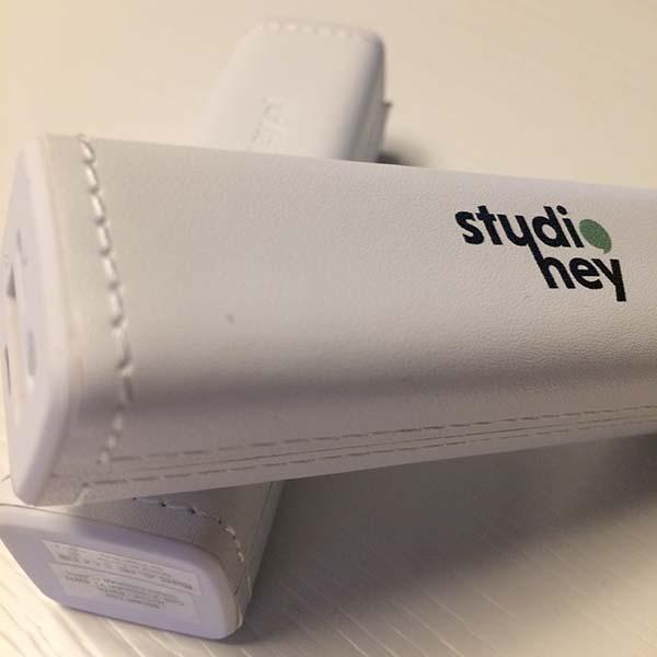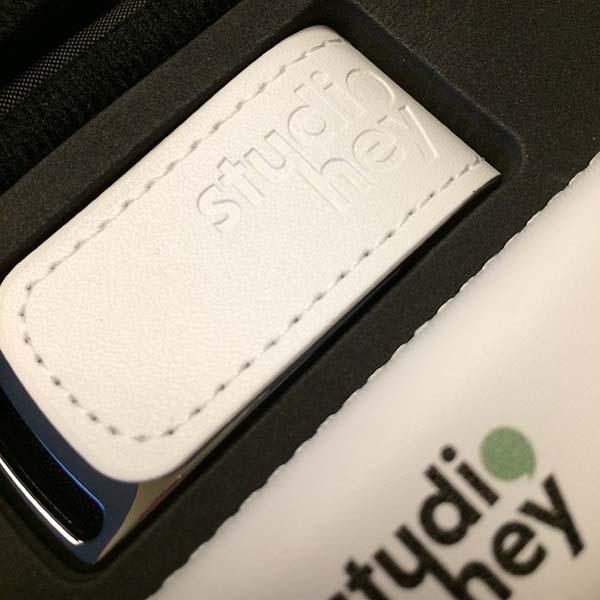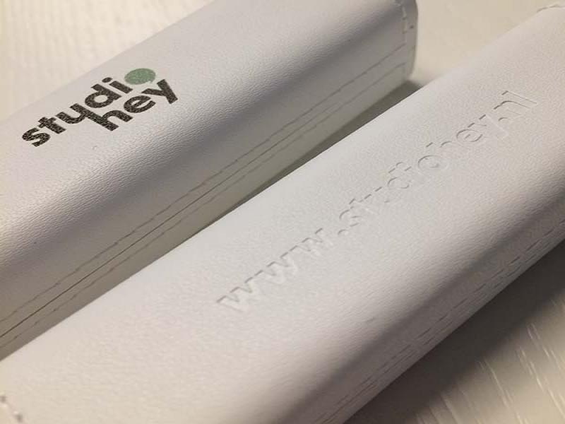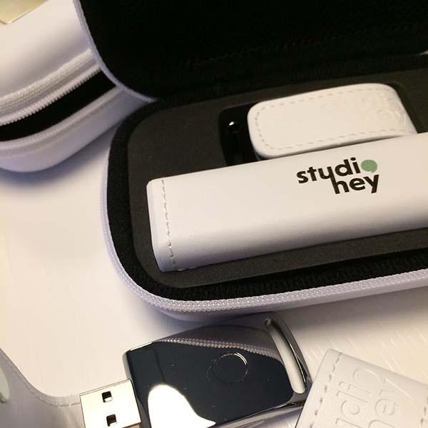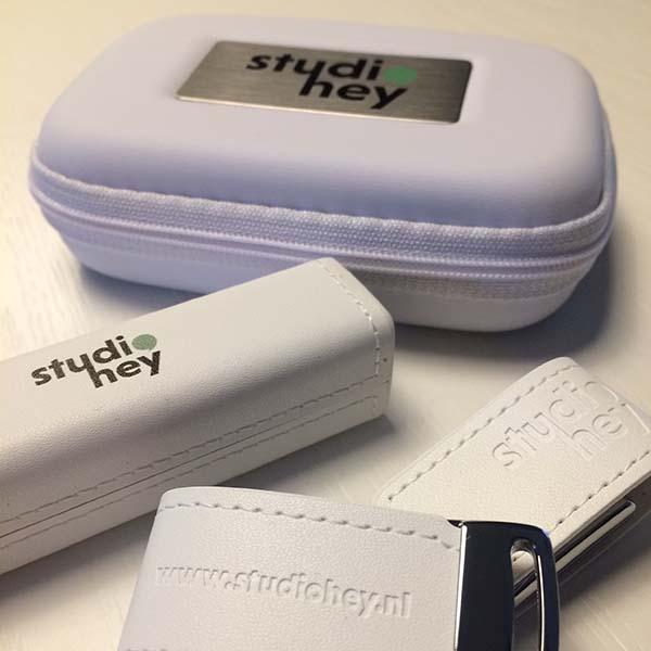En daarnaast, als hulpje voor de digitale wereld, een luxe mapje met een powerbank om een telefoon of ander apparaat onderweg even op te kunnen laden en een USB-stick voor extra dataopslag. Uiteraard niet zomaar een simpel setje maar een mooi vormgegeven gift set, uitgevoerd in leder dat d.m.v. bedrukking en embossing helemaal past in de huisstijl van Studio Hey.
