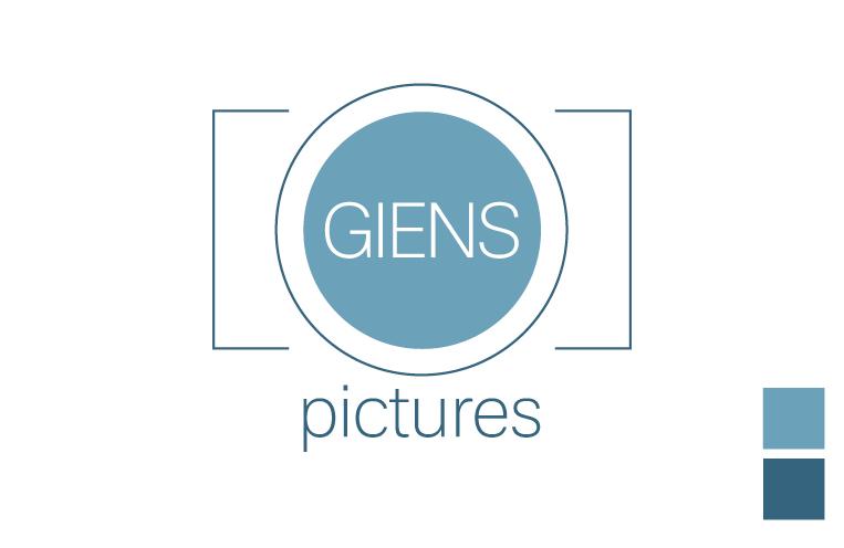 Samen met de eigenaresse hebben we de naam bedacht, deze is ontstaan door een gedeelte van haar bijnaam (GIEN) te koppelen aan de engels term voor foto (PICTURE). Het beeldmerk is een gestileerde versie van een camera en slechts uit enkele lijnen opgebouwd. GIENS Pictures is van dezelfde eigenaresse als GIENS Support en daarom hebben we er voor gekozen om beide logo's en de huisstijl kleuren met elkaar in verbinding te brengen. Beide bedrijven hebben dezelfde huisstijlkleuren en de opbouw van het logo ligt in het verlengde van elkaar.